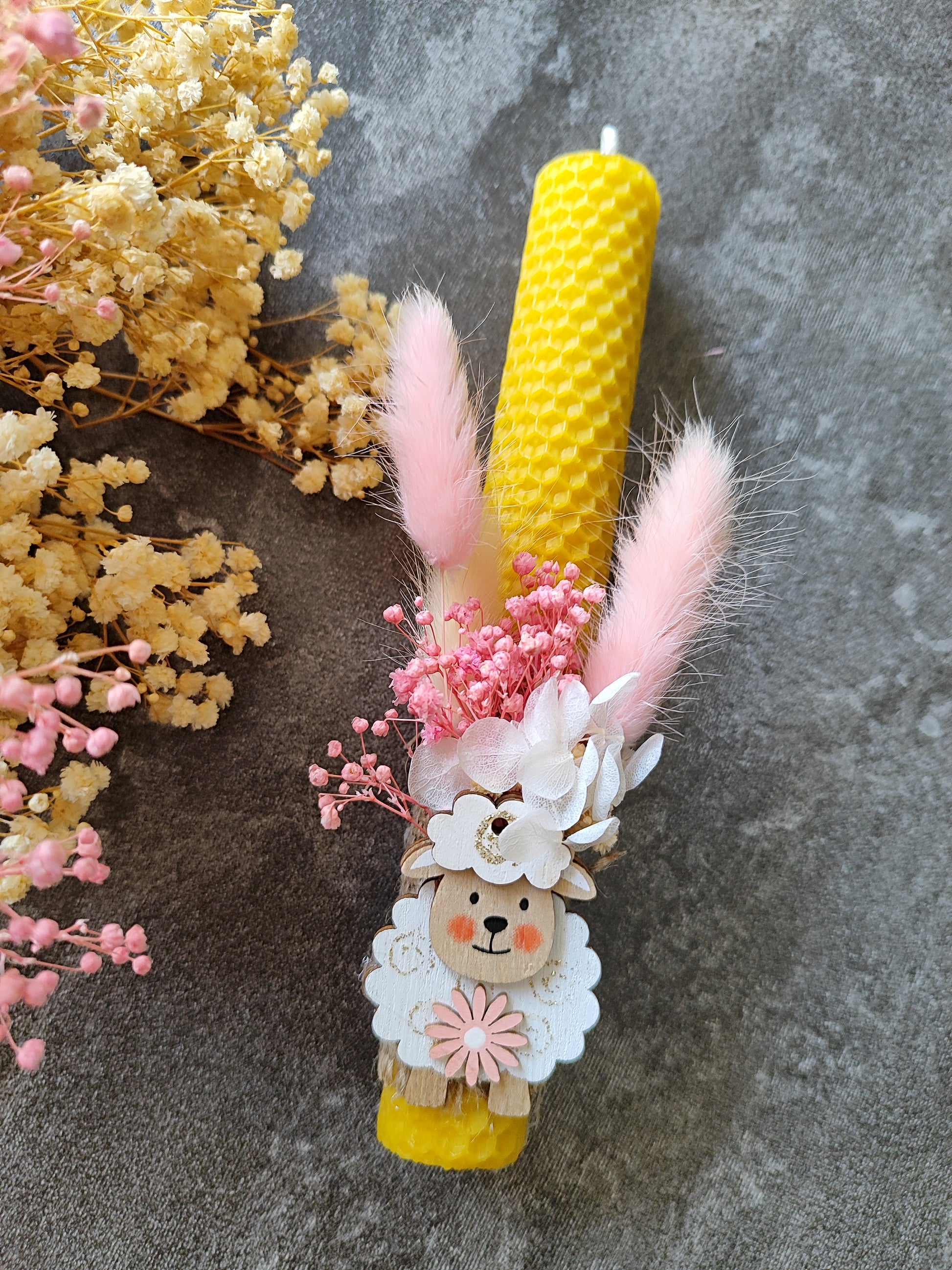 Ανακαλύψτε τις μοναδικές, χειροποίητες λαμπάδες μας, κατασκευασμένες από 100% αγνό μελισσοκέρι και διακοσμημένες με προσεκτικά επιλεγμένα αποξηραμένα άνθη. Κάθε λαμπάδα είναι φτιαγμένη με αγάπη και μεράκι, προσφέροντας φυσική ομορφιά, ζεστό φως και το διακριτικό άρωμα του μελισσοκεριού. Ιδανική επιλογή για το Πάσχα, καθώς συνδυάζει την παράδοση με την αισθητική της φύσης.